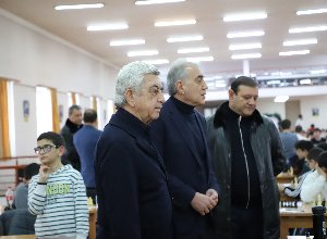 Today the third President of the Republic of Armenia and the President of the Armenian Chess Federation, Serzh Sargsyan, visited the Chess Academy of Armenia to observe the ongoing 16th Andranik Margaryan Memorial.